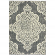 8' X 11' Gray and Ivory Oriental Stain Resistant Indoor Outdoor Area Rug