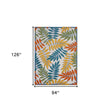 This 8-foot x 11-foot ivory and blue indoor outdoor area rug is a great way to add warmth to a room. Makes a great way to dress up your patio, porch, or poolside, but also works well as a durable and easy to maintain option in the kitchen, family room, or mudroom. Crafted through machine-made construction, this rectangle rug effortlessly combines style with practicality, making it a versatile addition to any space. 94-inch h x 126-inch w x 0.25-inch d.