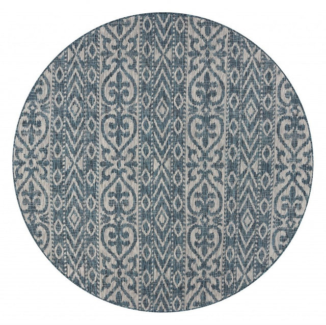 8' X 8' Blue And Gray Round Indoor Outdoor Area Rug