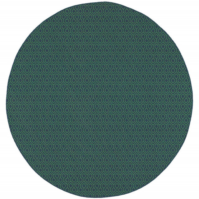 8' X 8' Blue and Green Round Geometric Stain Resistant Indoor Outdoor Area Rug