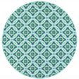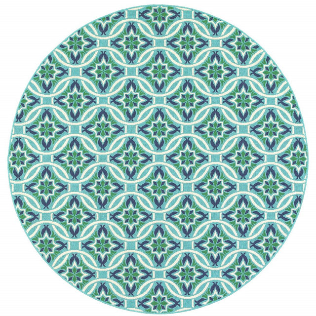 8' X 8' Blue and Green Round Geometric Stain Resistant Indoor Outdoor Area Rug