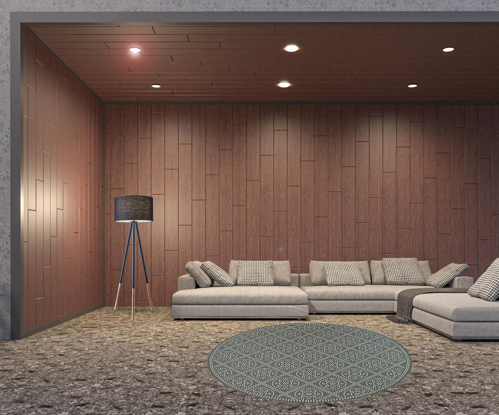 Add some artistry to your room with this 8-foot x 8-foot gray and ivory round geometric stain resistant indoor outdoor area rug. This geometric round shaped rug features a geometric pattern in gray and ivory that combines a good looking print with a unique and updated shape. The mix of shape, color, and design gives this rug refreshing visual interest. Ideal for spaces with kids and pets, this rug is stain resistant to help repel stains and spilled liquids. Area Rugs help to give warmth and sense of home to your space. 0.11-inch H x 94.49-inch W x 94.49-inch D