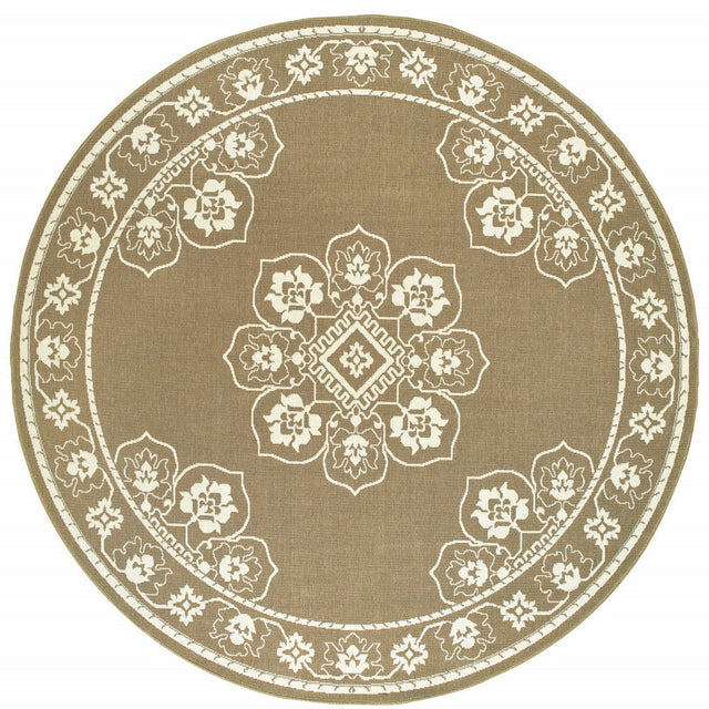 8' X 8' Tan Round Oriental Stain Resistant Indoor Outdoor Area Rug