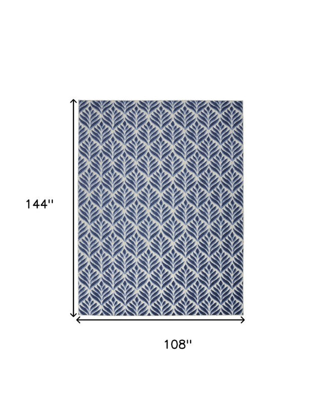 9' X 12' Blue Floral Stain Resistant Non Skid Area Rug
