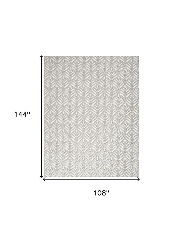 9' X 12' Grey Floral Stain Resistant Non Skid Area Rug