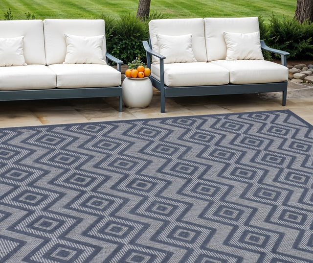 9' X 12' Navy Blue Indoor Outdoor Area Rug