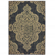 9' X 13' Black and Tan Oriental Stain Resistant Indoor Outdoor Area Rug