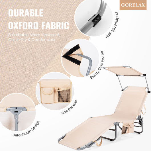Adjustable Outdoor Beach Patio Pool Recliner with Sun Shade