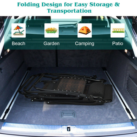 Made of solid steel frame the chair is stable enough to ensure a long service time. And the durable rattan seat is tightly connected with frame by bungee rope for added safety. Widened armrest and the removable head pillow can well support your body. And this patio lounge chair is lightweight and foldable which is easy for storage and transportation.
