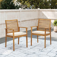 Outdoor Patio Dining Chairs Set of 2 with Removable Padded Cushion and Slatted Backrest-Beige