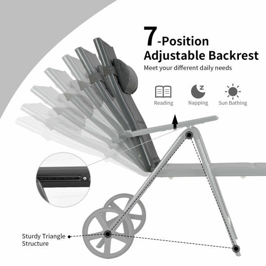 Patio Reclining Chaise Lounge with Adjust Neck Pillow-Gray