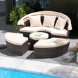 ● Retractable Canopy: The patio round daybed provides you with customizable comfort with a retractable canopy allowing you to relax in the shade or soak up the sun as your preference. The premium gas strut offers firm support while the secure fixing ties help tidy the canopy.