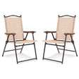 Set of 2 Patio Folding Sling Back Camping Deck Chairs-Beige