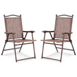 Set of 2 Patio Folding Sling Back Camping Deck Chairs-Brown