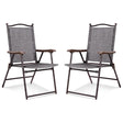 Set of 2 Patio Folding Sling Back Camping Deck Chairs-Gray
