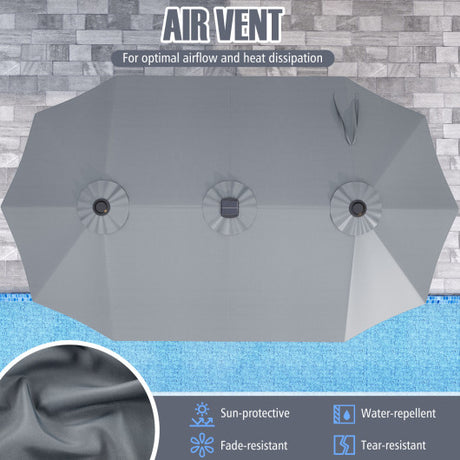 15.5 FT Extra-Large Patio Umbrella with LED Solar Lights and Crank Handle-Gray