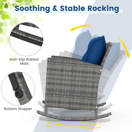 3-Piece Patio Rattan Roker Chairs with Tempered Glass Table and Soft Cushions-Dark Blue
