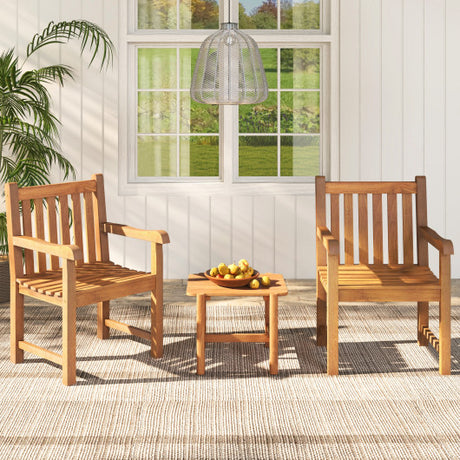 Teak Wood Patio Dining Chair with Slatted Seat Backrest and Solid Legs