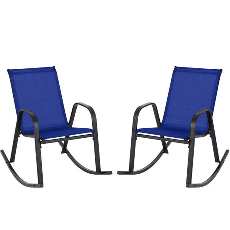 Set of 2 Metal Patio Rocking Chair with Breathable Seat Fabric-Navy