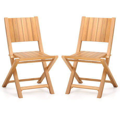 2 Pieces Teak Wood Outdoor Dining Chairs with Slatted Seat