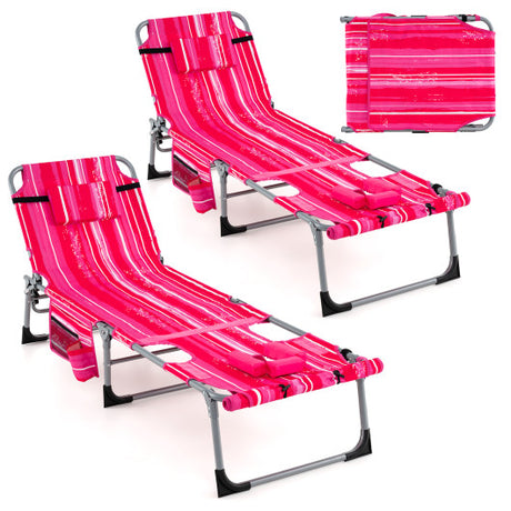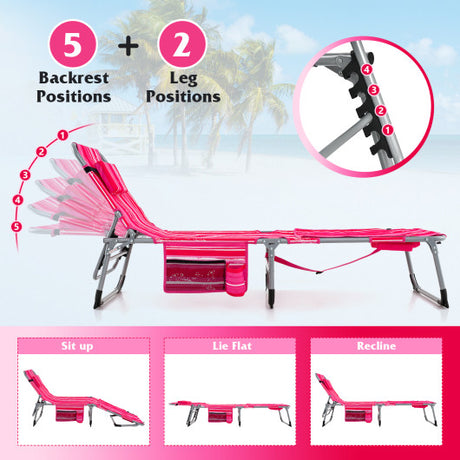 5-position Outdoor Folding Chaise Lounge Chair-Pink