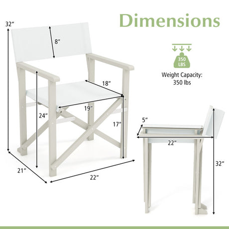 Folding Director Chair with Acacia Wood Frame and Machine Washable Oxford Fabric-Off White