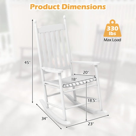 High-Back Acacia Wood Outdoor Rocking Chair with Solid Rocking Base-White