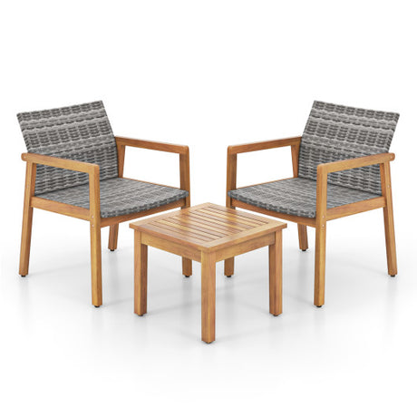 3 Piece Wood Patio Furniture Set with Seat Cushions and Acacia Wood Frame-Gray