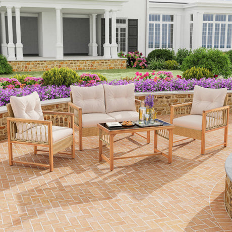4-Piece Patio Furniture Set with Loveseat Single Chairs and Coffee Table