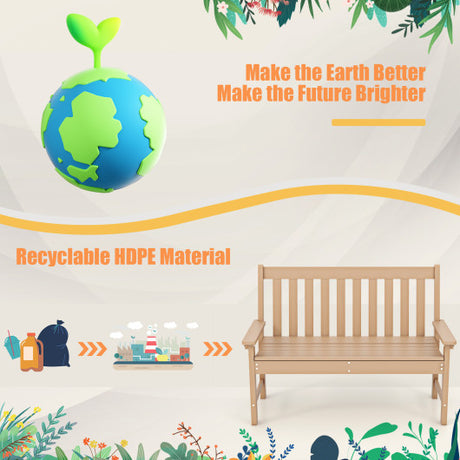 52 Inch All-Weather HDPE Outdoor Bench with Backrest and Armrests-Teak