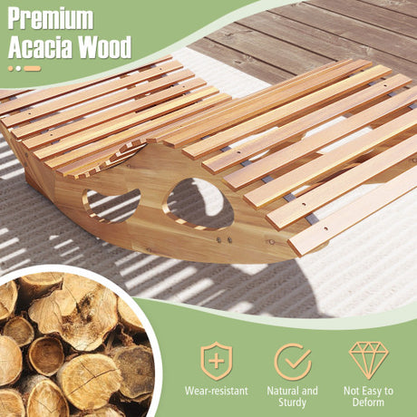 Acacia Wood Patio Rocking Sun Lounger Chaise Lounge with Ergonomic Curved Seat