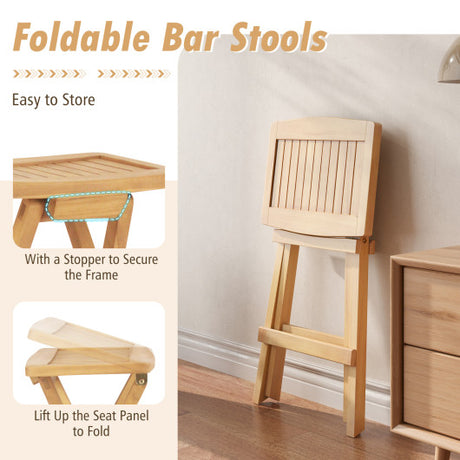 30 Inch Teak Wood Bar Chair with Footrest and Backrest for Deck Poolside Garden
