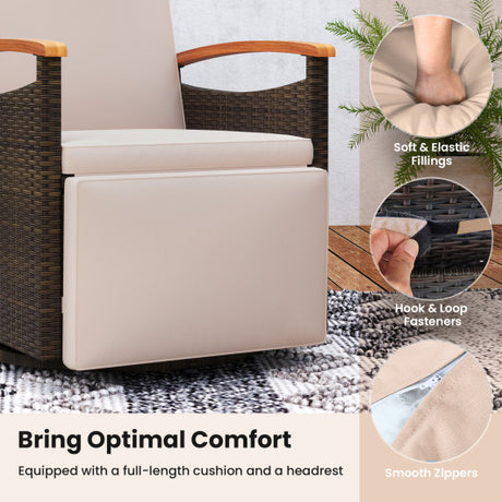 Patio Rattan 360 ° Swivel Recliner Chair with Adjustable Backrest and Footrest-Beige