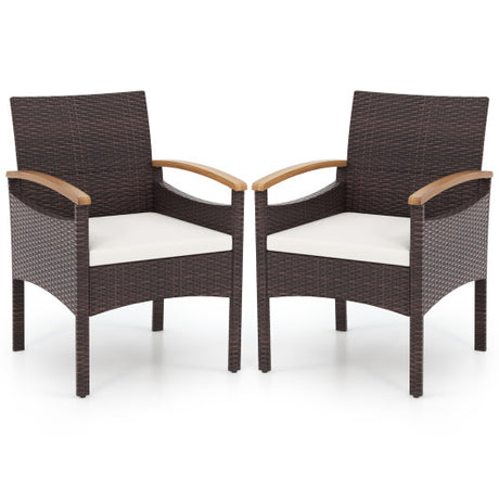 3 Pieces Patio Furniture Set with Acacia Wood Frame Cushions-Brown