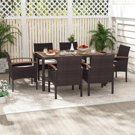 7 Pieces Patio Rattan Furniture Set with Sectional Sofa Cushions-Beige