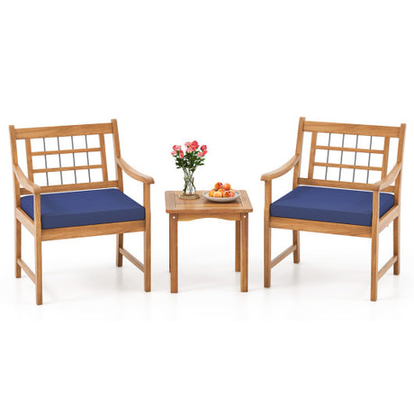3 Piece Wood Patio Furniture Set with Seat Cushions and Acacia Wood Frame-Navy