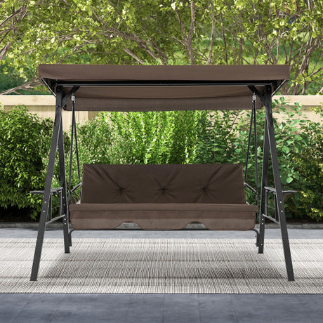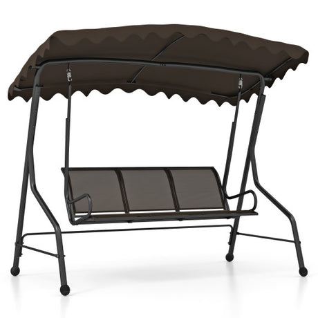 3-Seat Outdoor Porch Canopy Swing with Adjustable Shading-Brown