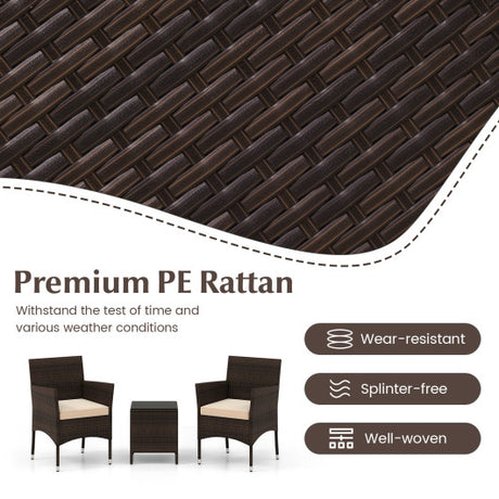 3 Pieces Patio Rattan Furniture Set with Removable Cushions-Beige