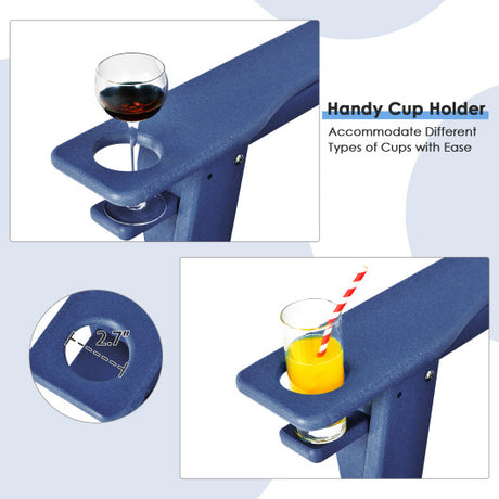 Outdoor Adirondack Chair with Built-in Cup Holder for Backyard Porch-Navy