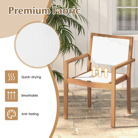 Stackable Outdoor Dining Chair Set of 2 with Acacia Wood Frame