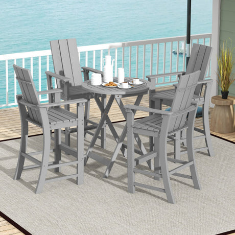 Tall Adirondack Chair Outdoor Bar Stool with Ergonomic Backrest for Backyard-Gray