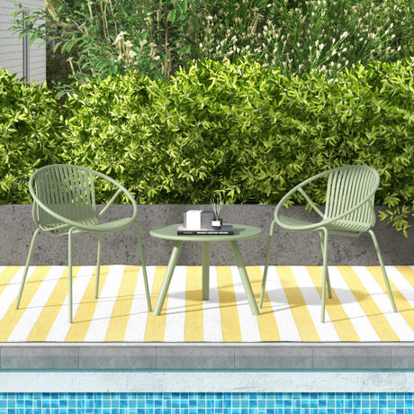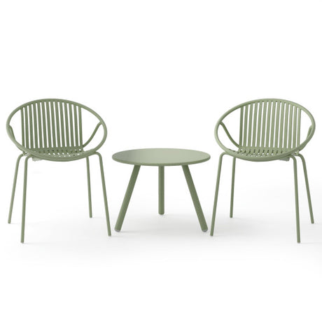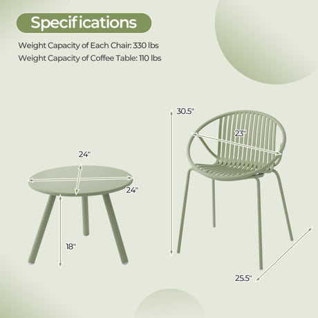 All Weather PP Patio Conversation Set with Round Coffee table and 2 Chairs-Green