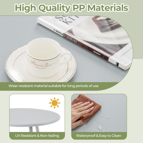 All Weather PP Patio Conversation Set with Round Coffee table and 2 Chairs-Gray