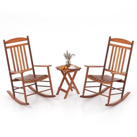 3-piece Outdoor Poplar Wood Rocking Bistro Set-Natural