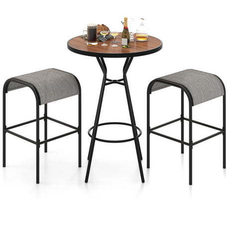 3 Pieces Outdoor Round Bar Table Set with 1.6 Inches Umbrella Hole