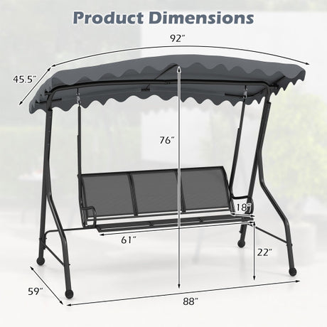 3-Seat Outdoor Porch Canopy Swing with Adjustable Shading-Gray