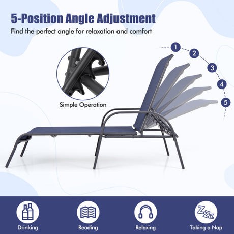 Adjustable Patio Chaise Folding Lounge Chair with Backrest-Navy