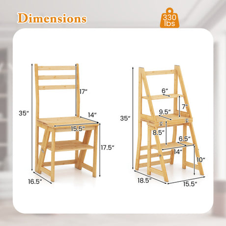 Multifunctional 3-in-1 Ladder Chair Display Plant Stand for Library Kitchen Office-Natural