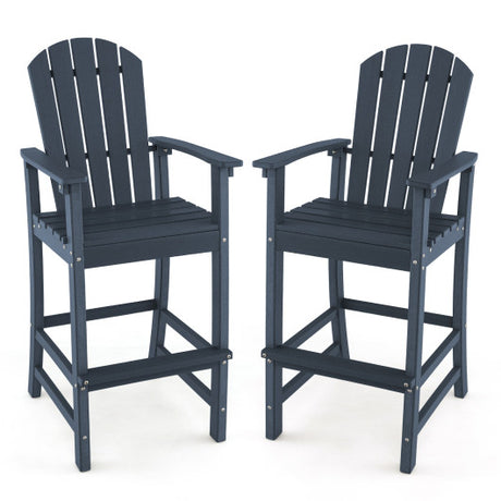 30 Inches Counter Height Outdoor HDPE Bar Stool with Armrests and Footrest-Navy