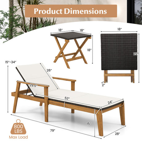 3 Piece Patio Conversation Set with Solid Acacia Wood Armrests and Tabletop-White